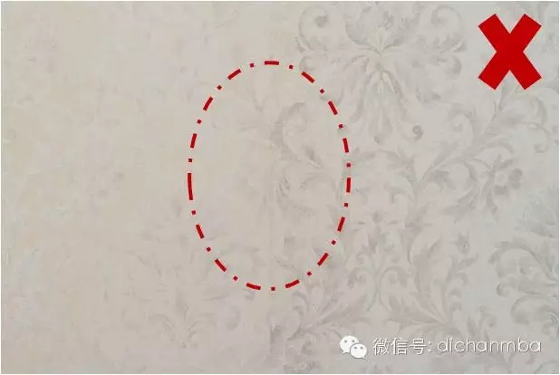 距離墻面1.5M處觀察壁紙,有嚴重色差,不合格。