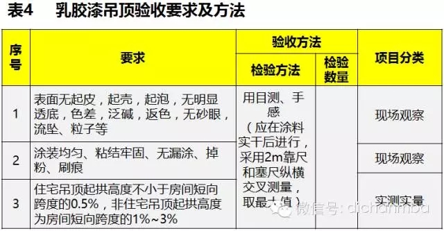 乳膠漆吊頂?shù)陌惭b驗收要求及方法應(yīng)按“表4”的規(guī)定進行。
