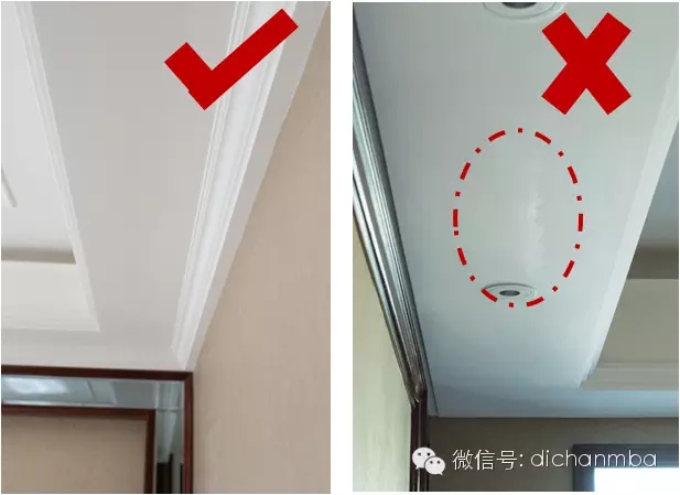 吊頂乳膠漆有明顯刷紋,不合格。