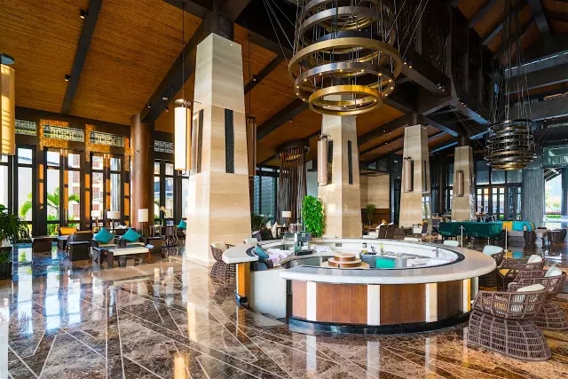 酒店設(shè)計(jì)領(lǐng)導(dǎo)者Hirsch Bedner Associates(HBA)以茂密蔥郁的森林、熱帶植物和中國(guó)南海的壯闊景致為背景,為文昌魯能希爾頓酒店打造出與海南島壯美風(fēng)光融為一體的奢華室內(nèi)設(shè)計(jì)。精心的設(shè)計(jì)布局營(yíng)造出溫馨開(kāi)闊之感,與酒店自然環(huán)境的磅礴氣勢(shì)相得益彰。HBA充分利用酒店充滿意趣的建筑風(fēng)格,設(shè)計(jì)亮點(diǎn)隨處可見(jiàn),既為客人呈現(xiàn)出耳目一新的感官體驗(yàn),又為無(wú)與倫比的景色增添了魅力。