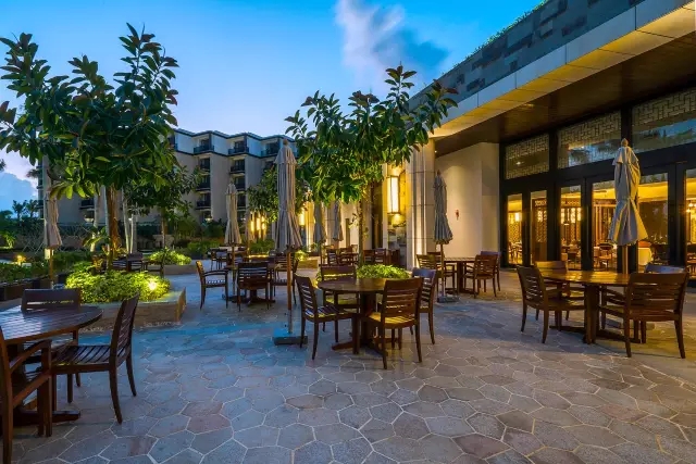 這一主題還延伸到酒店的兩家餐廳—博卡意式餐廳和海天閣中。海天閣將海南島當(dāng)?shù)氐纳省⒐に嚭蛨D案等元素融入其中,專門供應(yīng)本地佳肴。為彰顯文昌引以為傲的獨(dú)特、悠久文化,HBA的設(shè)計(jì)還實(shí)現(xiàn)了地域特色和當(dāng)代手法的珠聯(lián)璧合。