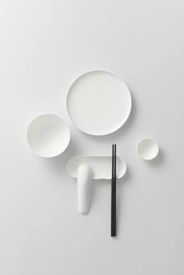 設計師的本意只是為了一個人用餐所做的設計,卻一應俱全地提供了碗、碟、盤、筷、勺、托六件食器,讓“壹人食”也不缺用餐的儀式感。食器的器形簡約到了極致,但每一個弧度都符合人體工學,握感無比舒適。