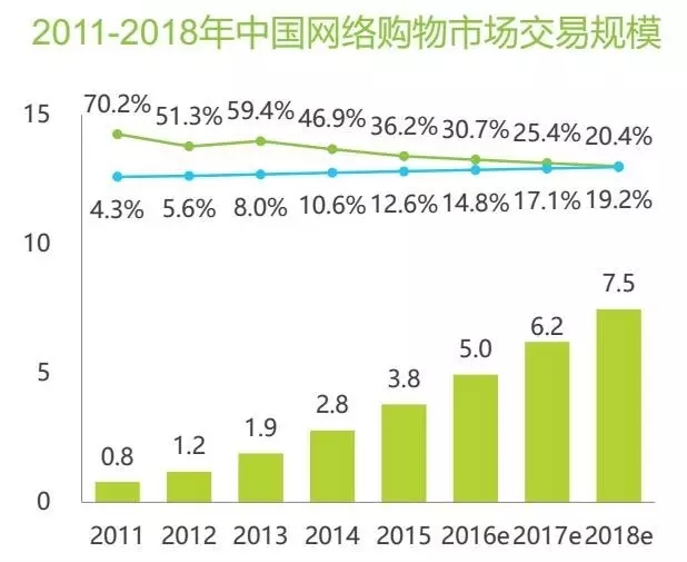 2015年中國(guó)電子商務(wù)市場(chǎng)交易規(guī)模16.4萬(wàn)億元,增長(zhǎng)22.7%,網(wǎng)絡(luò)購(gòu)物36.2%和本地生活服務(wù)O2O38.3%的增長(zhǎng),在互聯(lián)網(wǎng)+大背景下,包括家裝在內(nèi)的一些傳統(tǒng)企業(yè)紛紛向線上發(fā)展。