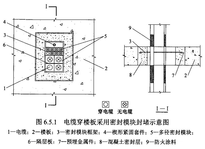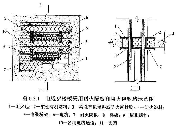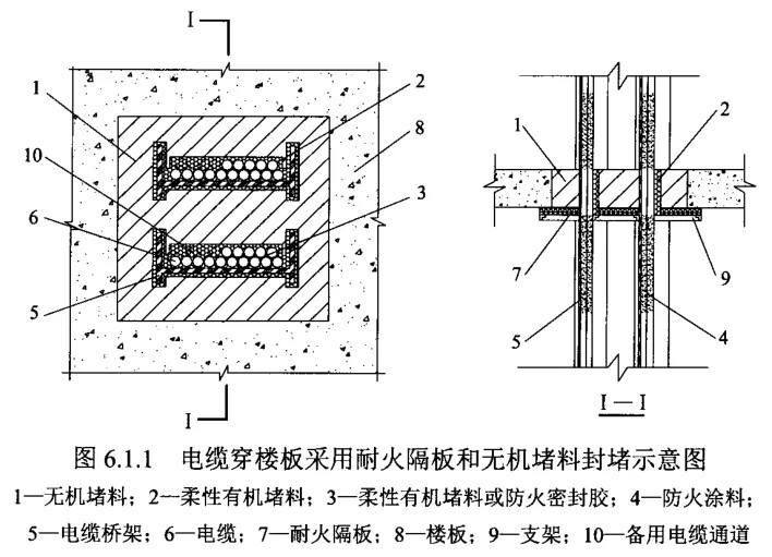 依據(jù)DL/T 5707《電力工程電纜防火封堵施工工藝導(dǎo)則》,電纜穿樓板防火封堵可采用五種方法:①耐火隔板和無(wú)機(jī)堵料封堵、②耐火隔板和阻火包封堵、③防火復(fù)合板封堵、④防火涂層板封堵、⑤密封模塊封堵,封堵原理和具體做法總結(jié)如下,以供大家在工程中結(jié)合規(guī)范參考實(shí)施。