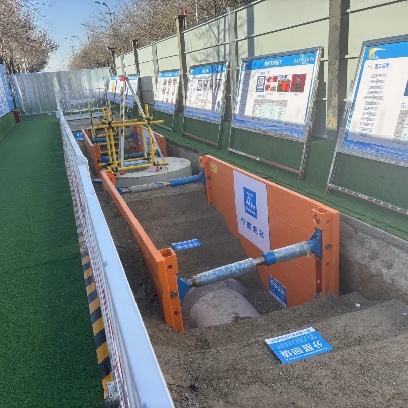 該箱式支護(hù)系統(tǒng)大大降低了管溝槽塌方的風(fēng)險,工人在支護(hù)系統(tǒng)內(nèi)施工安全更有保障。