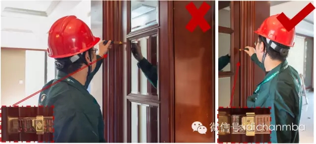 門鎖驗收:安裝牢固,門把手無松動,合格。