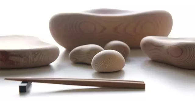 ▲ 由黑川雅之設計的杉木碗、筷、筷子架,體現(xiàn)了材料本身自然清新的紋理特征
