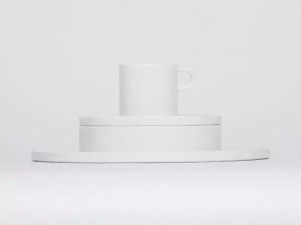 其設計的源泉,是最為簡單、純粹的圓。碗和盤子都是圓形的器具,俯視為正圓,側(cè)視為橢圓形的延伸變化,就像宇宙每個獨立轉(zhuǎn)動的行星最終形成了絢爛多彩的銀河。隨著橢圓不斷變化,不同直徑,不同深度,形成不同器皿。
