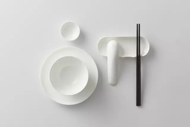 小時候的黑川喜歡偷偷跑去小溪里釣魚、游泳,雖然讓其著名建筑師父親黑川紀章覺得他“調(diào)皮”、“最難管”,但對于他自己而言,這可是愉悅的童年回憶。正是有了童年時代對自然的探索和發(fā)現(xiàn),他對食器有了更加質(zhì)樸原真的理解:“在最原始的時代,人們到河邊喝水,是用手把水捧起來,但是水都從指縫中流走,此后就出現(xiàn)了承東西的器皿——碗。”對于碗和盤子這些“最基本的餐具”,黑川先生用全新的視角和宇宙觀去發(fā)現(xiàn)隱藏在餐具當中的審美意趣和哲思。