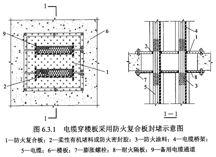 依據(jù)DL/T 5707《電力工程電纜防火封堵施工工藝導(dǎo)則》,電纜穿樓板防火封堵可采用五種方法:①耐火隔板和無(wú)機(jī)堵料封堵、②耐火隔板和阻火包封堵、③防火復(fù)合板封堵、④防火涂層板封堵、⑤密封模塊封堵,封堵原理和具體做法總結(jié)如下,以供大家在工程中結(jié)合規(guī)范參考實(shí)施。