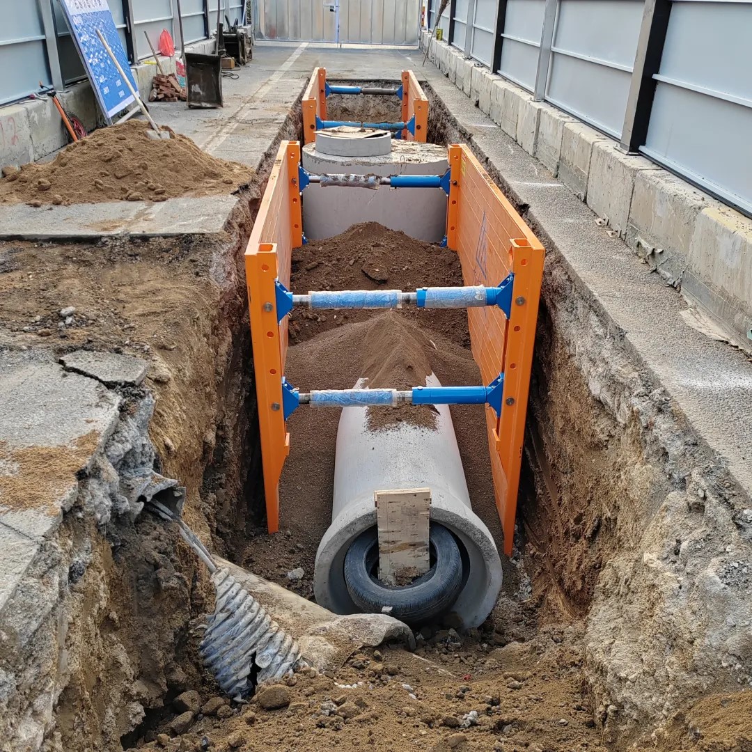 該箱式支護(hù)系統(tǒng)大大降低了管溝槽塌方的風(fēng)險,工人在支護(hù)系統(tǒng)內(nèi)施工安全更有保障。